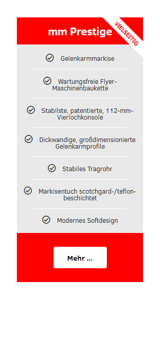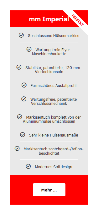 mm Markisen „Baureihen“: Imperial, Oase, Prestige und Comfort